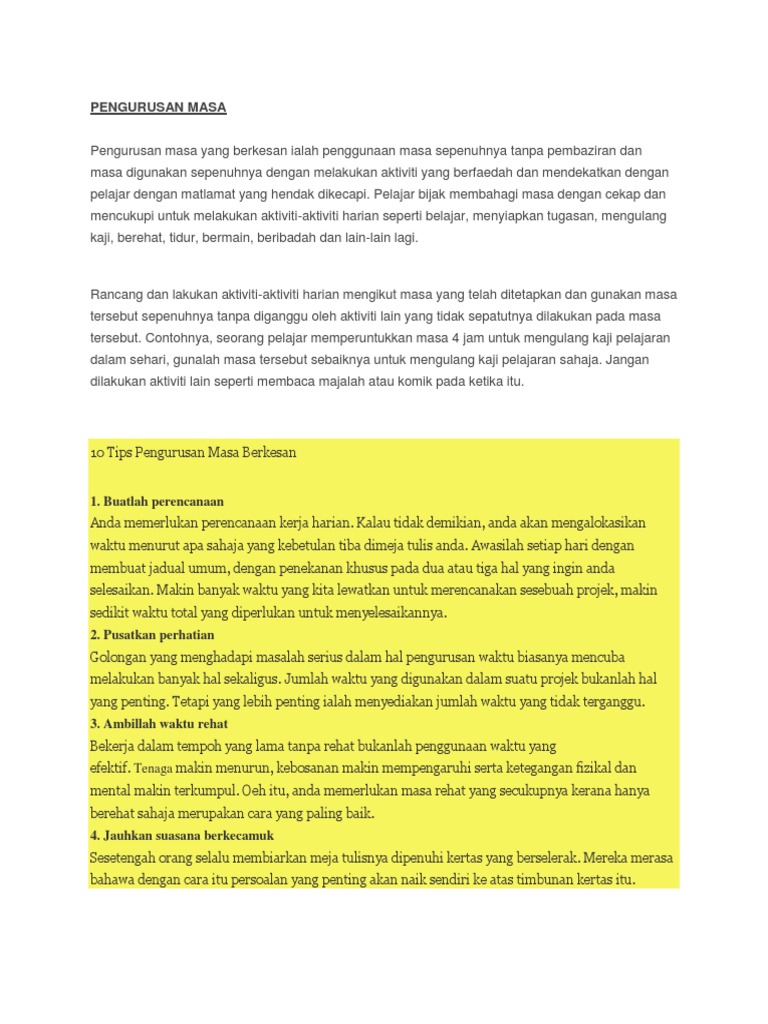 Contoh Ayat Dengan Perkataan Pengurusan Masa